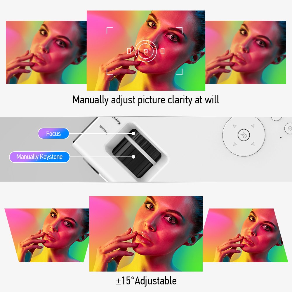 4.Portable Multimedia Versatility: AZEUS RD-822 mini projector is equipped with 2*HDMI, 2*USB, VGA, AV and Audio output. And it is convenient to connect with your phone, ipad, TV series etc. Please purchase an extra converter when connecting your phone.
