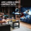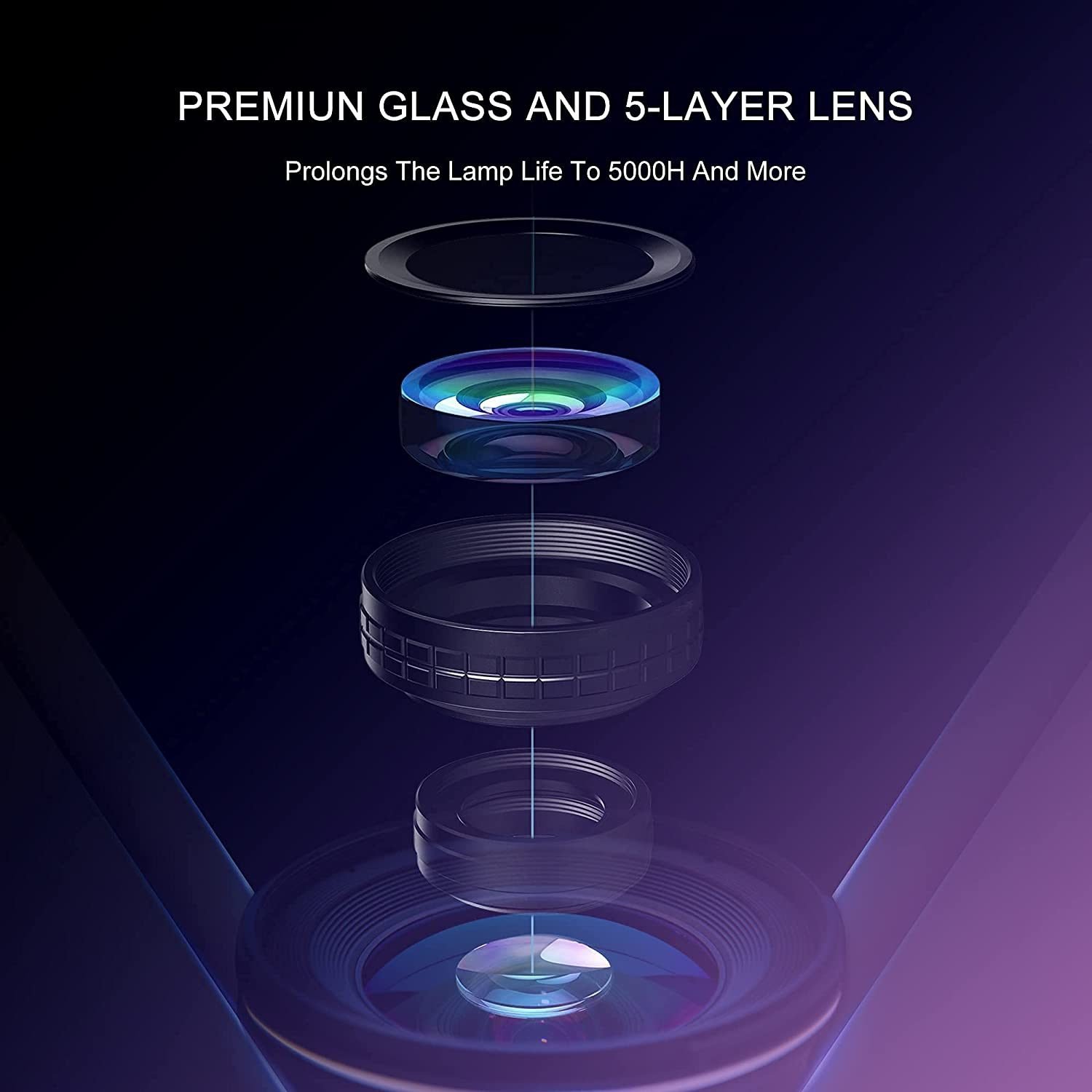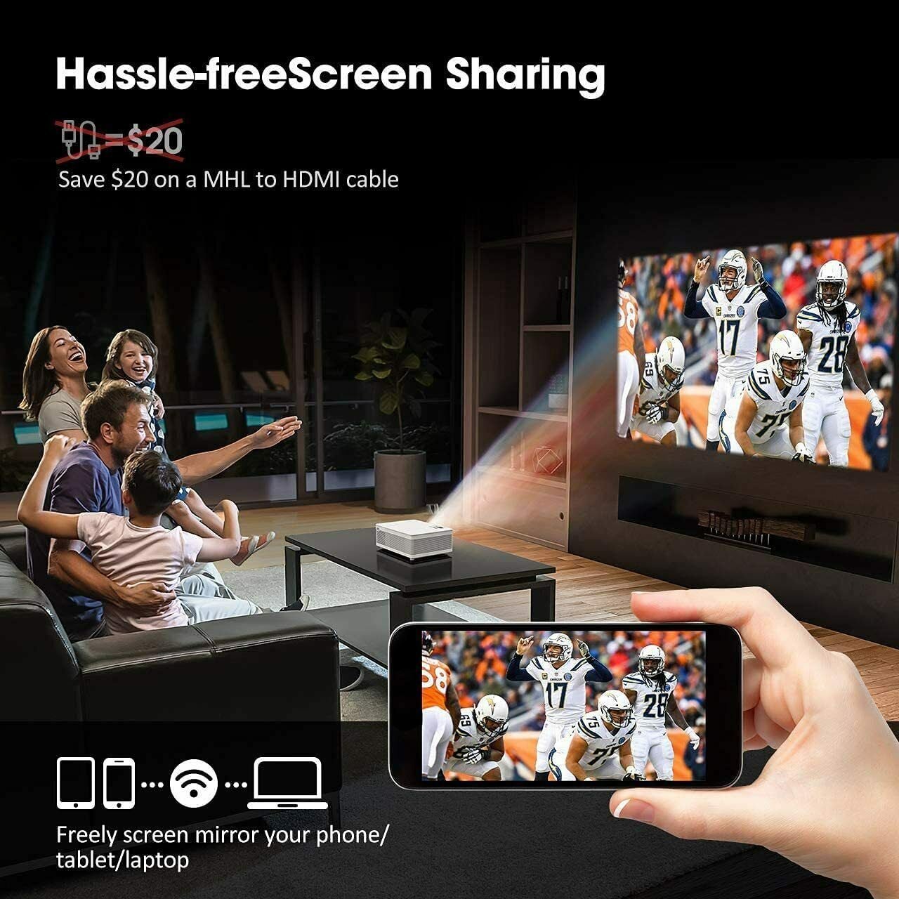 2.Bright And Enormous Screen Experience: 2020 Newest Upgrade Projector with 5000 lumens, +80% brightness than ordinary projector. The display size from 40" to 200". Utilizes LED light source and TFT LCD display technology ensures lower energy than conventional bulbs and also longer life up to 50,000hr