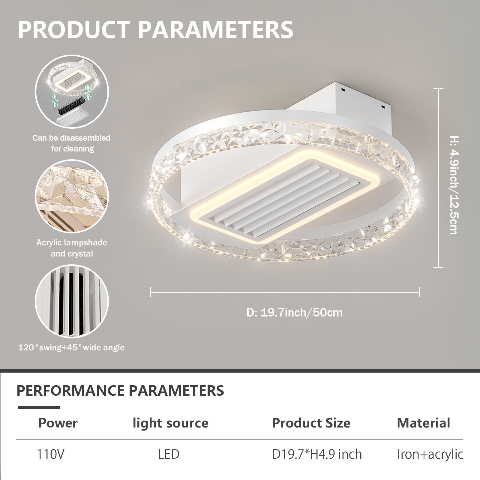 Bladeless Dimmable LED Ceiling Fan with Remote ControlModern style fan to cool down your room.This ceiling fan would be perfect for your kitchen, dining room, living room, bedroom and indoor space.6-speed fan control in forward/reverse(please adjust AC motor by hand if you would like to reverse.) In SUMMER, the air is directed downward, creating a gentle and cool breeze that enhances ventilation and dissipates heat, making your room more refreshing; in WINTER, the air is reversed upward, effectively promoting the circulation of hot air and ensuring every corner of your room is warm and cozy.The fan or illumination can be turned on separately.It offers the modern look and beautiful minimalist appeal you crave.