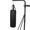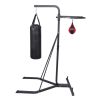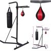 Delivery includes 1 x boxing stand frame, 1 x punching bag, 1 x speedball and 1 x speedball platform, including all the mounting accessories.Color: Black and redMaterial: SteelDimensions: 4' 5" x 3' 6" x 6' 8" (L x W x H)Main tube: 1.8" x 1.8" x 0.06"User height: 4' 7" - 6' 3"Inflatable speed ball: Φ 6.3" x 11"Punching bag: 11.4" x 32" (Φ x H), with the weight of 44 lbNet weight: 92.6 lbFabric: Polyurethane: 100%