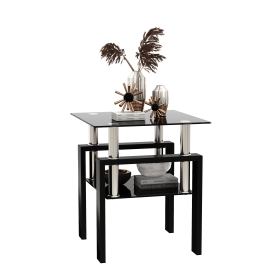 1-Piece Modern Tempered Glass Tea Table Coffee Table End Table, Square Table for Living Room, Black