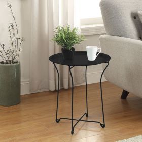 Round Metal Tray Black End Side Table, Removable Tray Outdoor & Indoor Drink, Snack, Coffee Table, Telephone Table