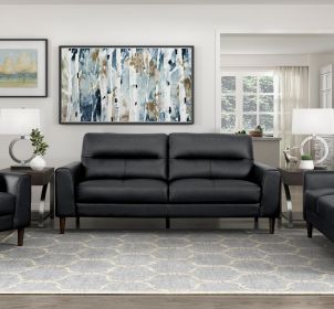 Modern Living Room Furniture Black Top Grain Leather Sofa 1pc Cushion Seat and Back Solid Wood Frame