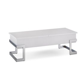 Modern Extendable Sliding Top Coffee Table with Storage in White&Walnut