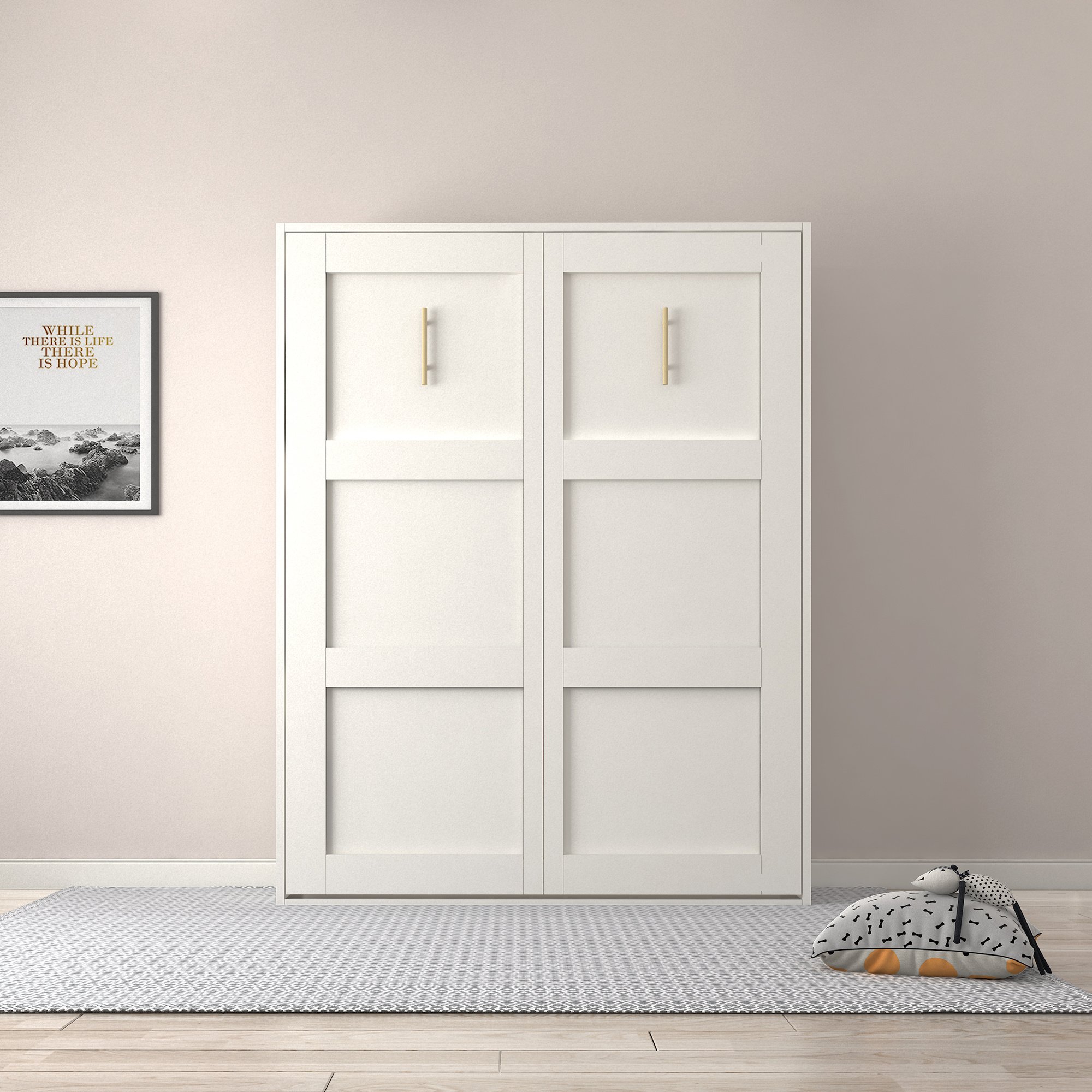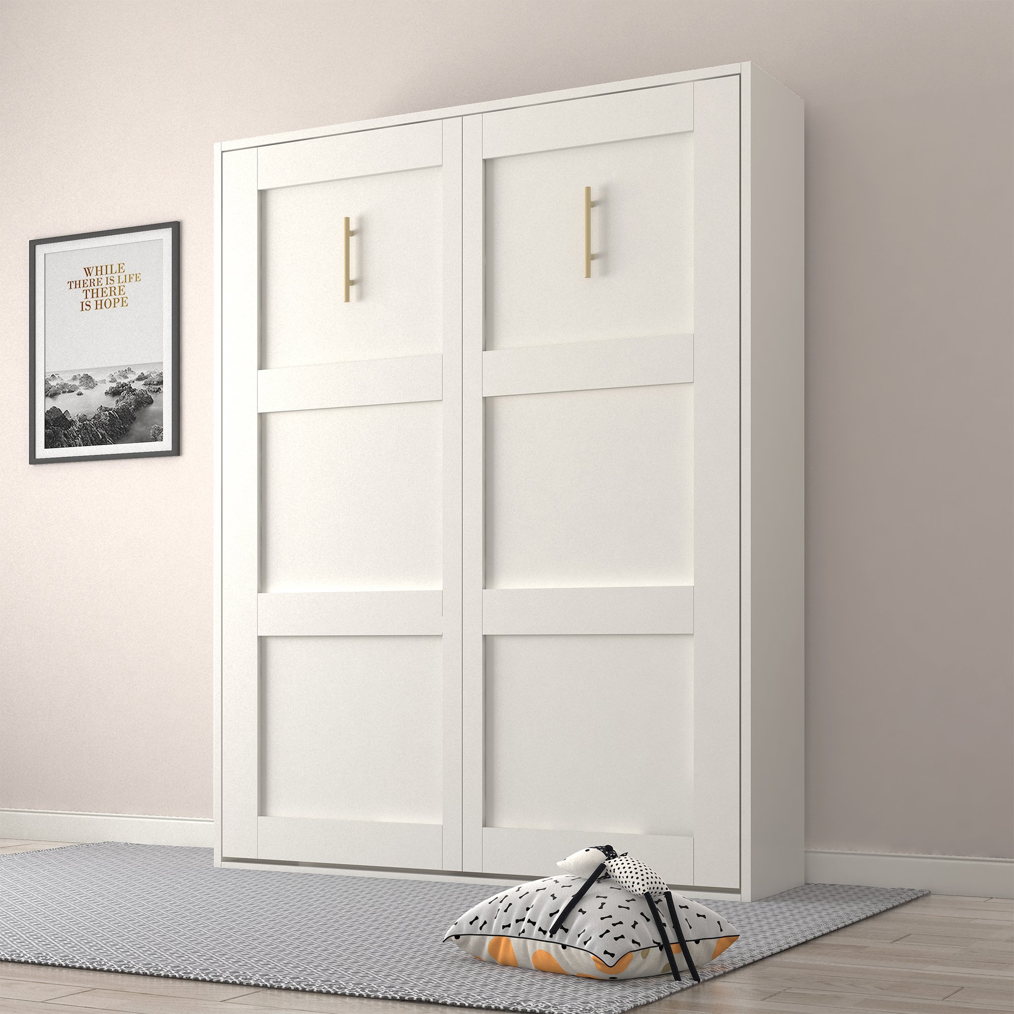 Morden Deisgn Full Size Vertical Murphy Bed for Bedroom or Guestroom White Wall Bed Space Saving Hidden Bed