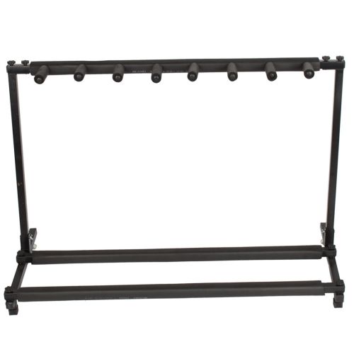 Introductions:If you are a collector of guitar, you must have the storage problem. This Rack Style Guitar Stand can help you solve this problem. It can hold seven Guitars at the same time. Made of new and high quality, it is a very strong and sturdy tubular guitar stand. This rack would be possible to hold all guitars including acoustic guitars, electric guitars and bass guitars. Besides, the stand boasts rugged square-tube construction and holds your acoustic securely and it also can be folded up for easy transport. Order it now, and you'll receive all these benefits.Features:1. Humanized design and high quality2. This rack is perfect for holding guitars all in one convenient and safe location3. Comfortable holds seven Guitars/Basses/Acoustics4. An excellent way to display and protect your instruments5. Easy to transport as the foldable designSpecifications:1. Dimensions: 1100*465*700MM2. Weight: 112.88oz / 3200g3. Material: Alloy & Resin4. Color: BlackPackage Includes:1 x Guitar Stand