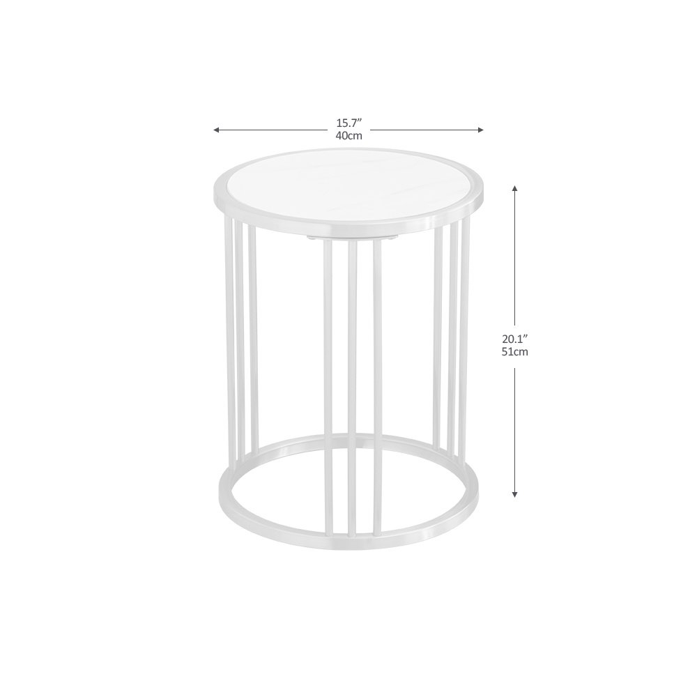 Sintered stone round side/end table with golden stainless steel frame