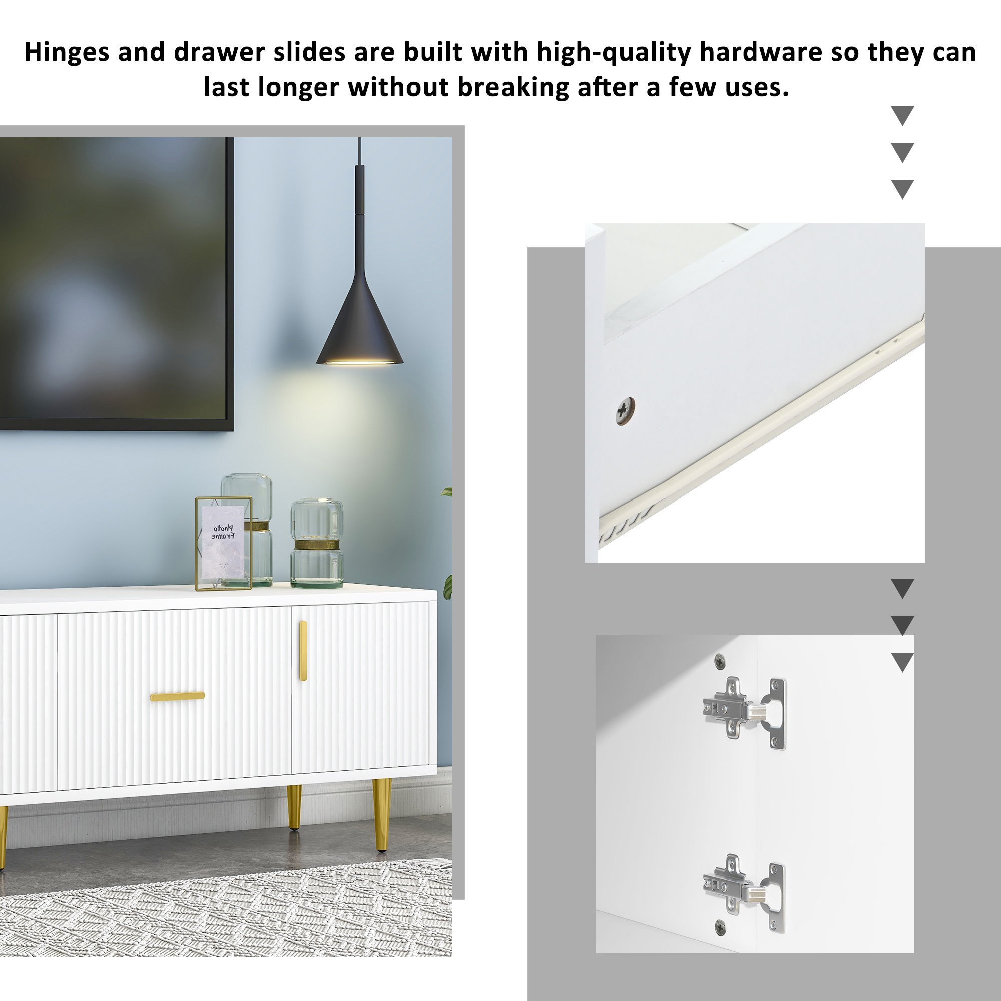 [STYLISH] Featuring a sleek design and 5 champagne legs, this contemporary TV Stand adds a modern and fresh touch to your living room.