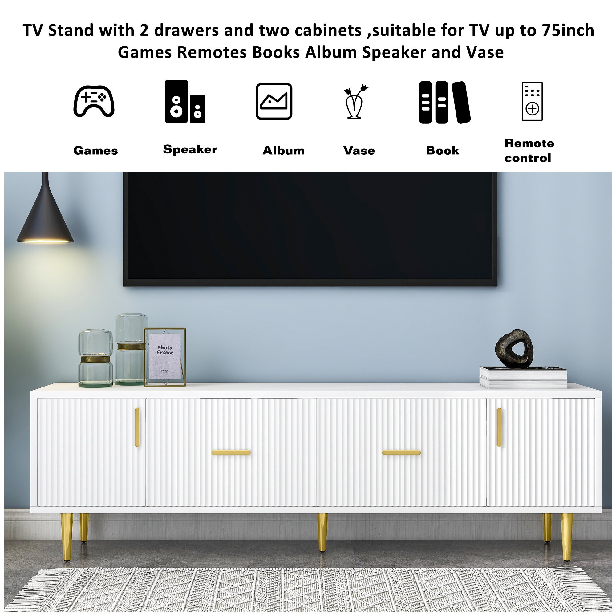 [SPACIOUS] This TV Stand offers ample storage space, providing you with plenty of room for all your favorite television equipment, media, and accessories.