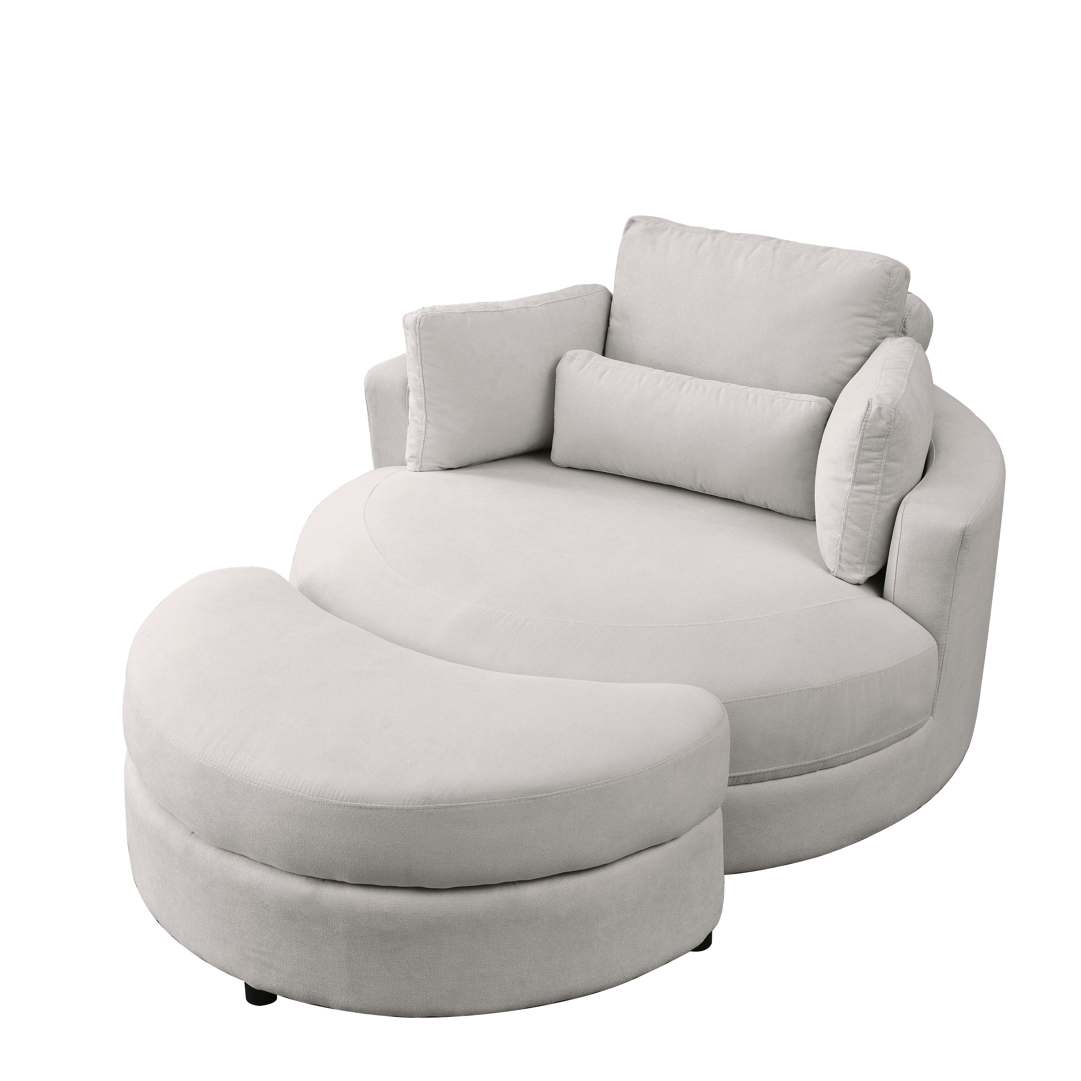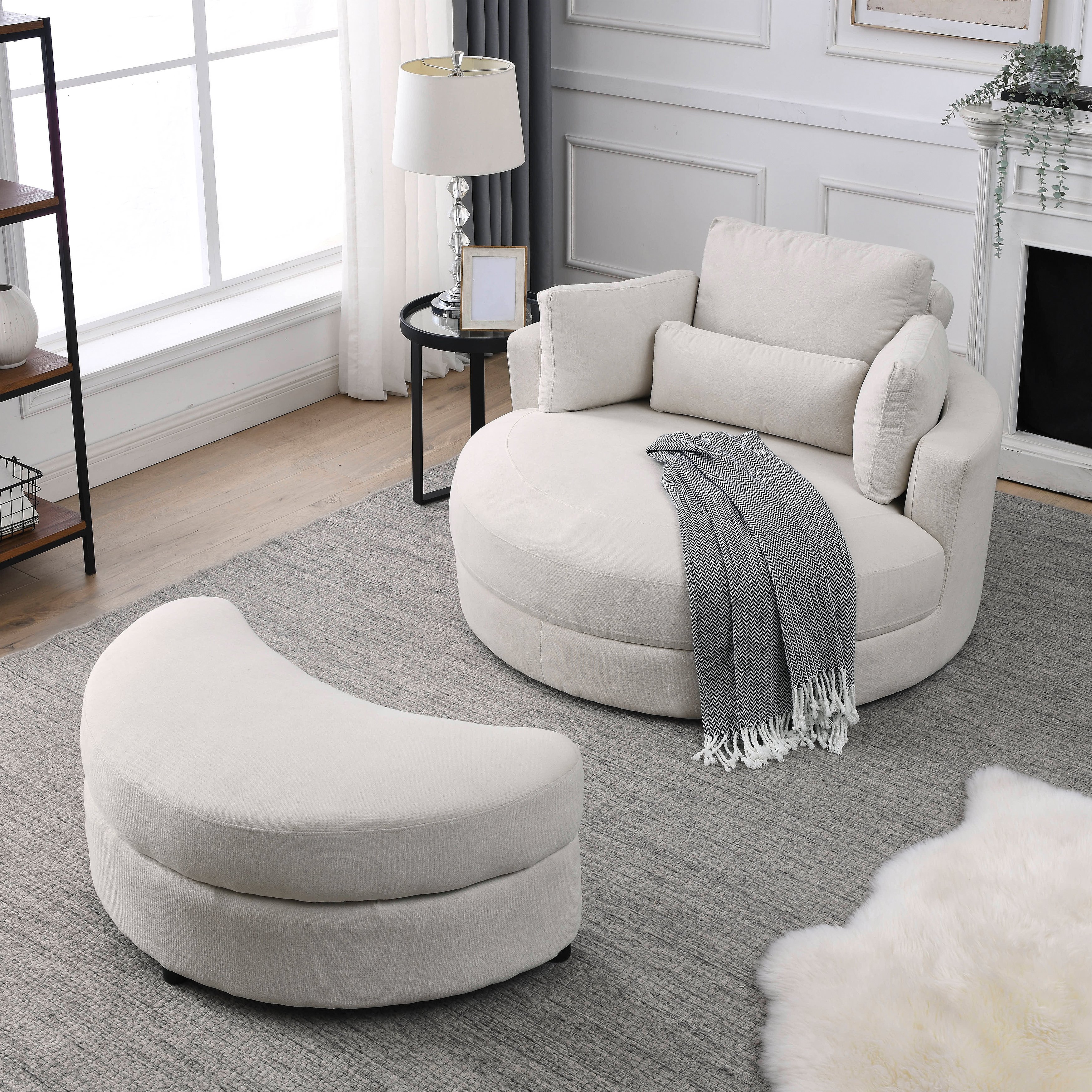 [Video] Welike Swivel Accent Barrel Modern Sofa Lounge Club Big Round Chair with Storage Ottoman Linen Fabric for Living Room Hotel with Pillows
